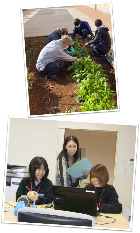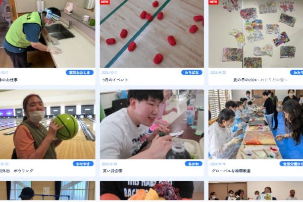 生活介護や就労支援といった通所施設、ショートステイや相談支援センターなど地域で暮らすことをサポートする事業所を運営しています。
