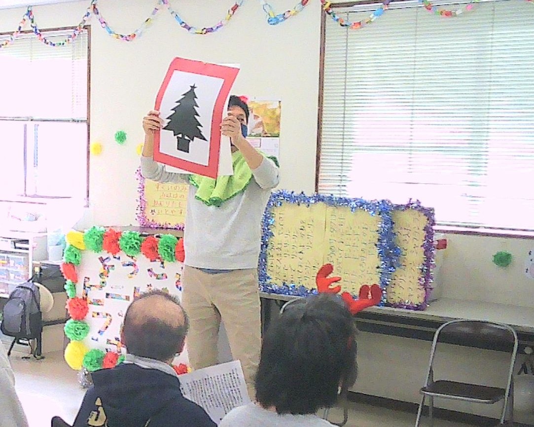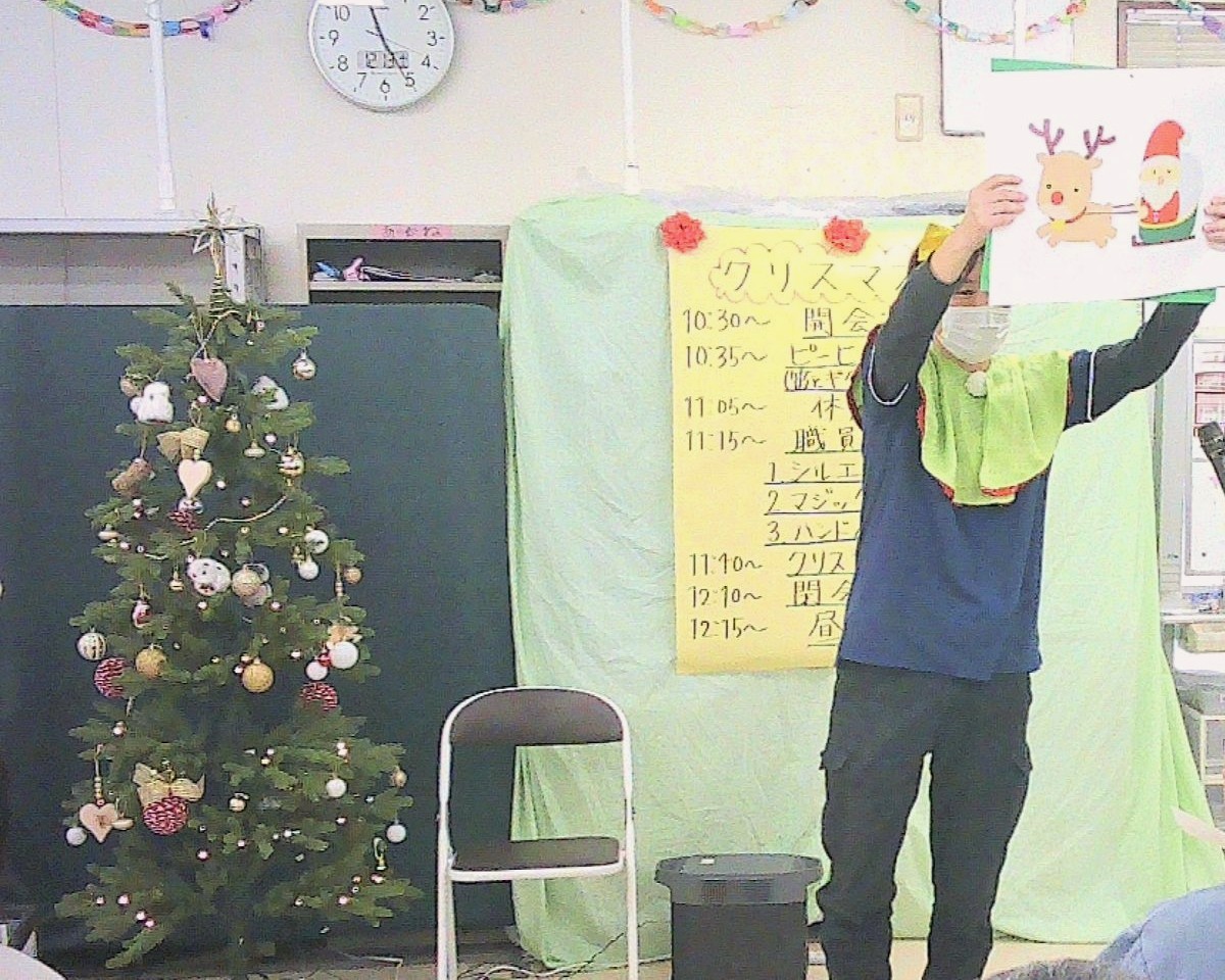 クリスマス会では、職員の出し物としてシルエットクイズをしました!