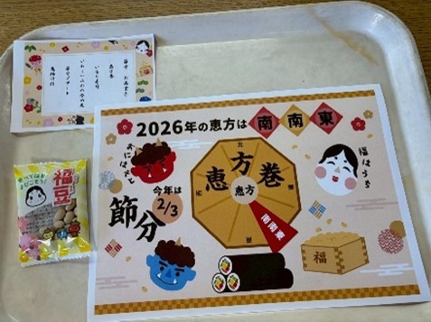 恵方巻や鬼除け汁など節分に関係のある食事で見た目も味も楽しむことが出来ました。